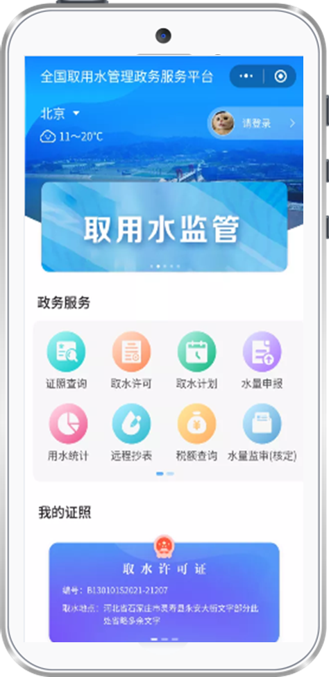 該方案以水資源管理係統、全國取用水管理政務服務平台為基礎,采用現有工作平台的基本組件,根據實際情況,在統一用戶身份認證、統一取用水管理政務服務事項標準、統一應用支撐、統一網絡支撐、統一信息資源彙集和共享等多方麵進行整合應用,建設取用水管理政務服務平台取用水戶端、管理端、公開端和小程序等